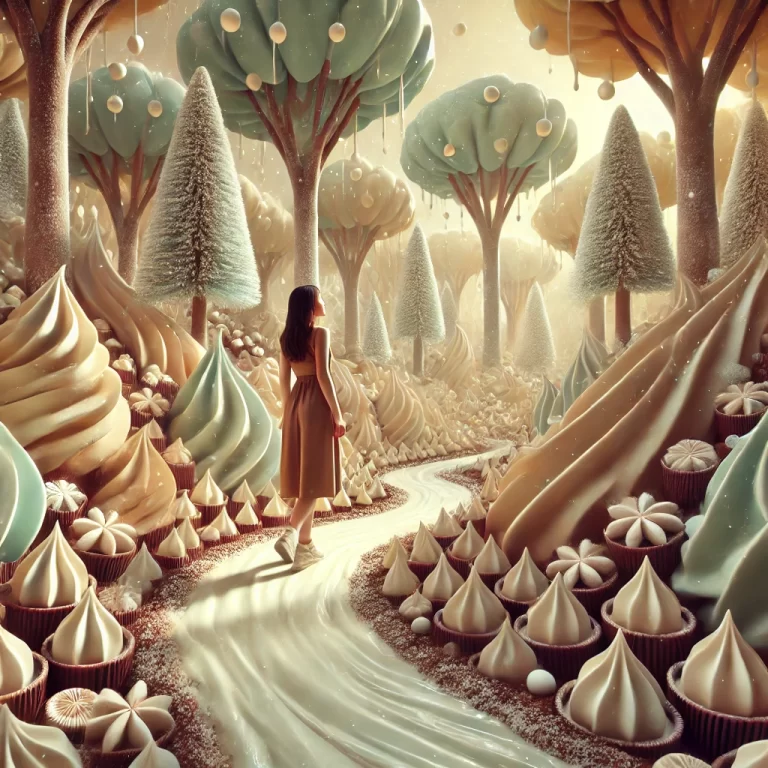 クリームの積もった丘、砂糖でできた木々、キャラメルで舗装された小道が続き、ムースの川がゆったりと流れている。