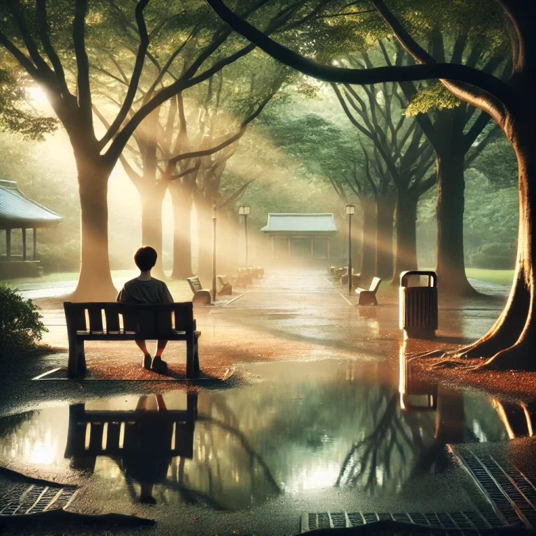 タカシはふと公園に足を運び、いつものベンチに腰を下ろした。